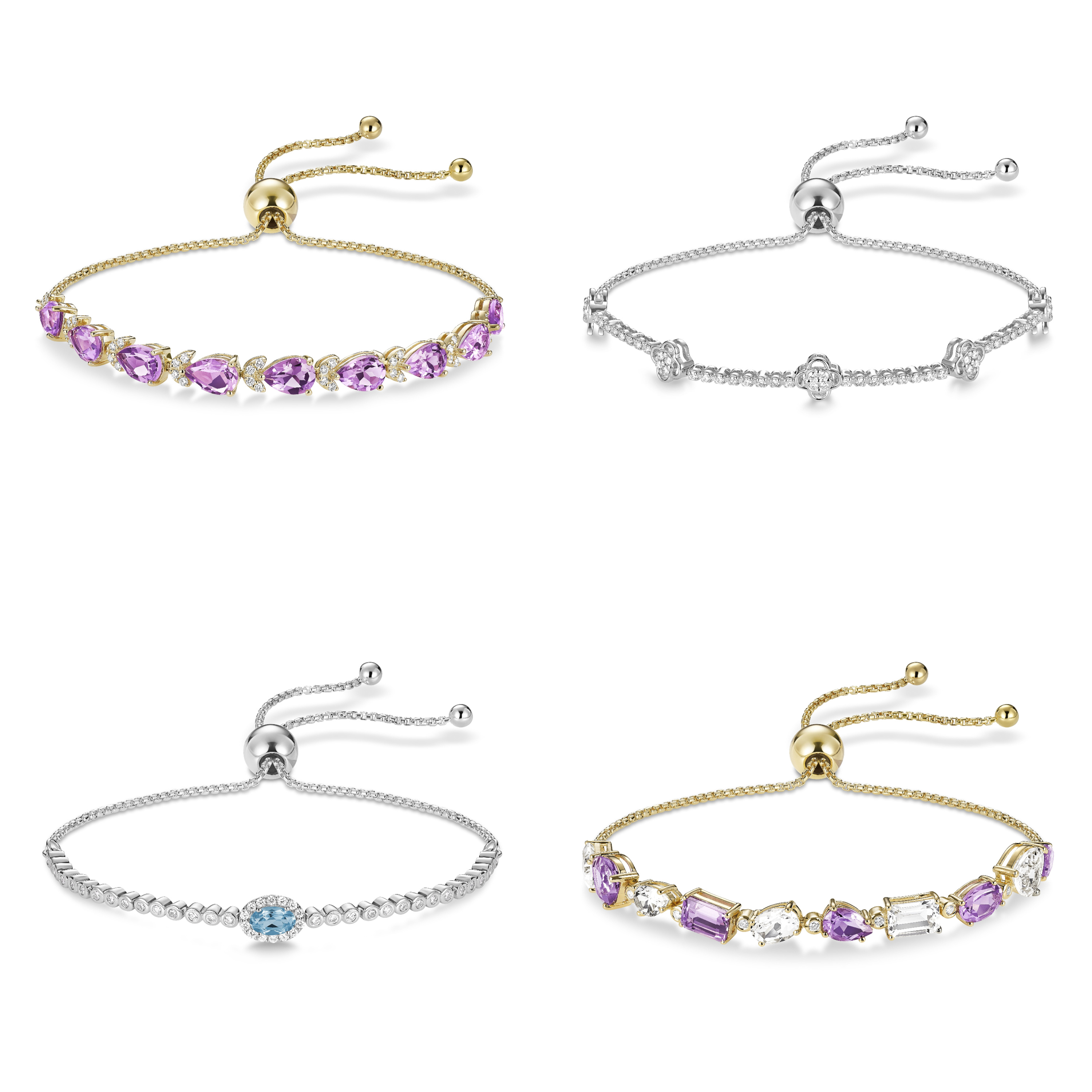 وتضم التشكيلة الجديدة أربع قطع فاخرة هي: سوار حجر الجمشت الوردي الأنيق، الذي يحتوي على ألماس وأحجار جمشت وردية اللون، ليأسر الوهلة الأولى للرومانسية اليافعة. بينما تمنح سلسلة من الألماس ذات القطع الوردي مقابل الذهب الأبيض سوار الألماس جاذبيته الملكية. فيما تعزز مجموعة رائعة من الماسات المذهلة من تألّق سوار حجر التوباز الأزرق السويسري الساحر، لتمنح مرتديتها إطلالة راقية وجميلة. وأخيراً، للحصول على خيار مرح وغريب الأطوار، يجمع سوار حجر الجمشت بمهارة بين البريق البهيج للجمشت مع حجر التوباز والألماس.